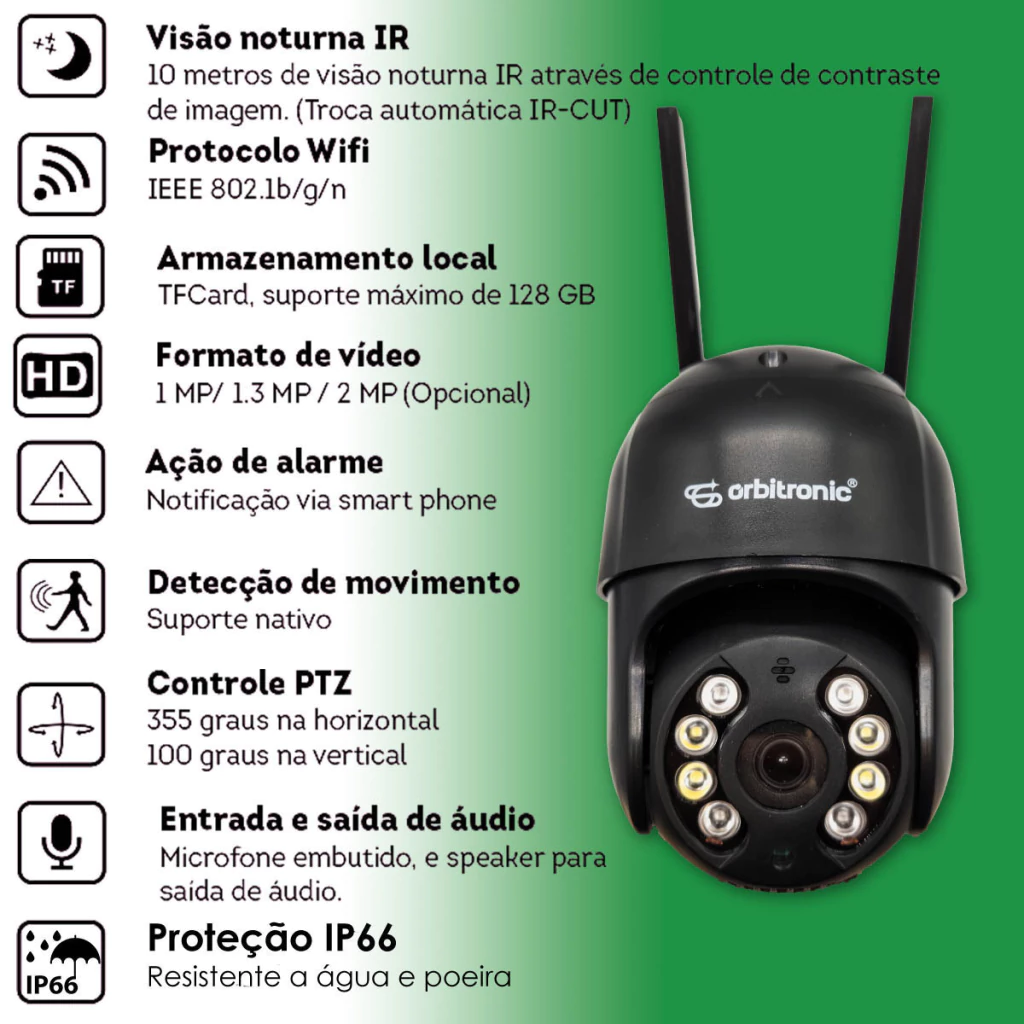 A câmera externa Orbitronic ORB776 BLACK é o equipamento ideal para sua segurança residencial e comercial.
