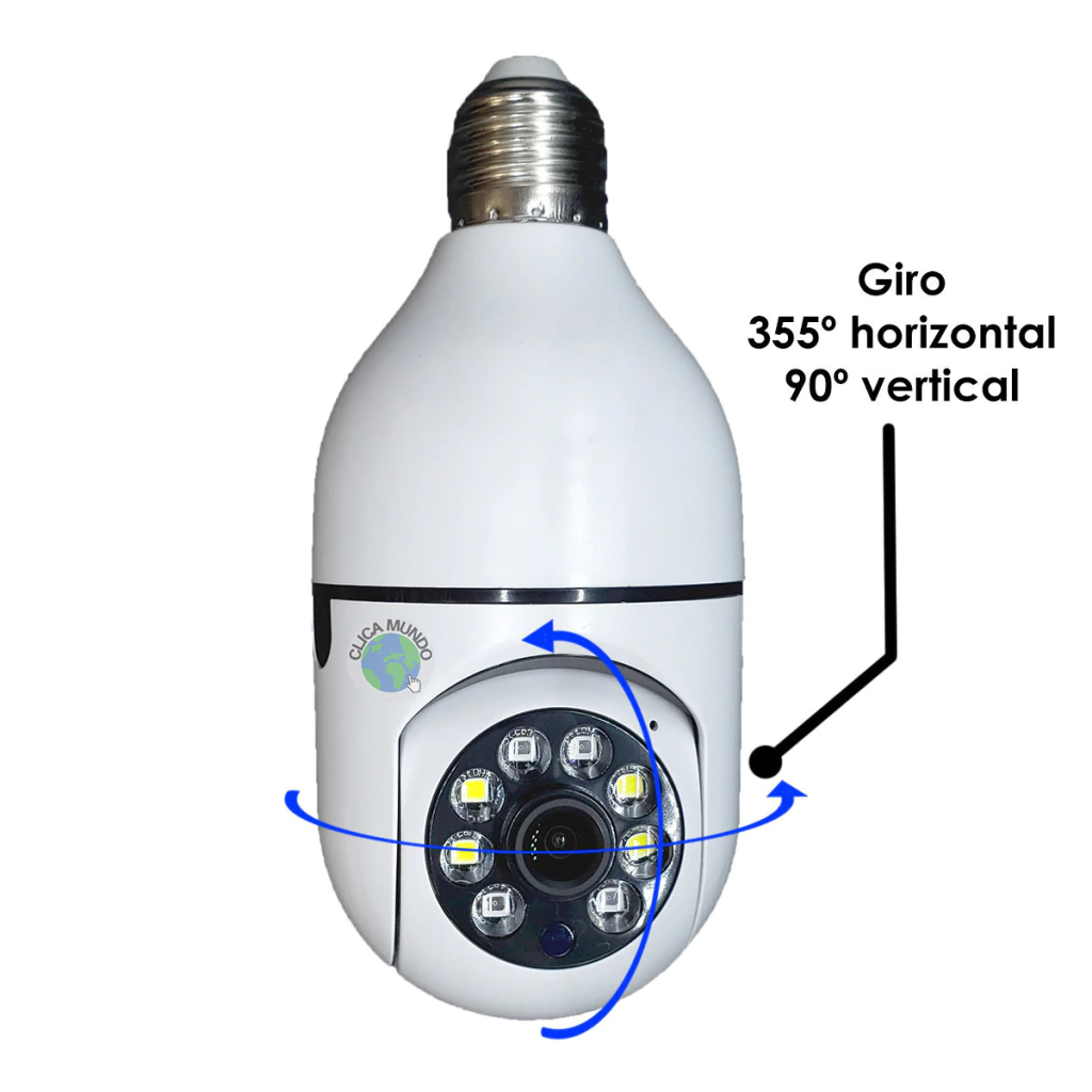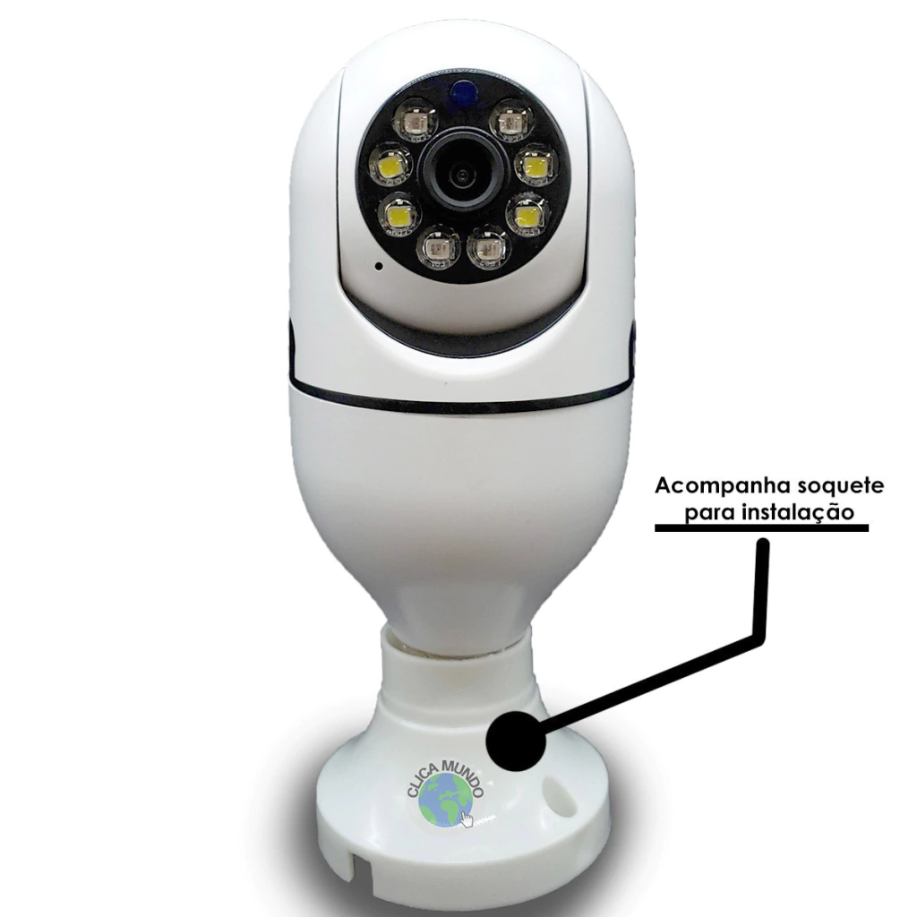 Com a Câmera Lâmpada IP Panorâmica com Rastreio você terá acesso remoto pelo celular de qualquer lugar do mundo. É o equipamento ideal para segurança residencial e comercial.