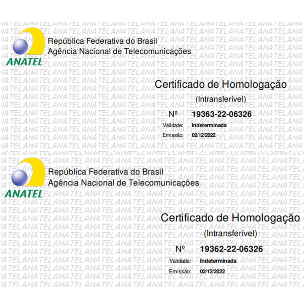 PRODUTO HOMOLOGADO PELA ANATEL Nº 19362-22-06326 E Nº 19363-22-06326