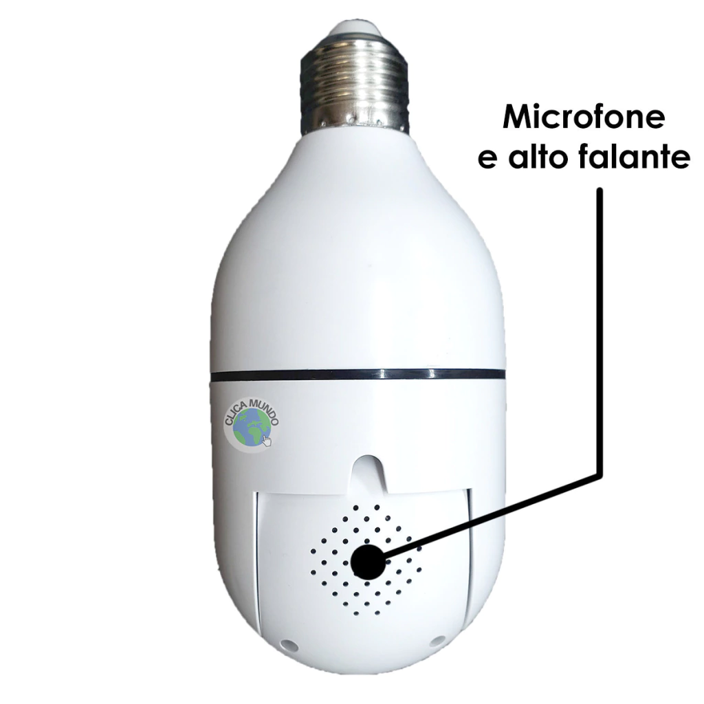 Com a Câmera Lâmpada IP Panorâmica com Rastreio você terá acesso remoto pelo celular de qualquer lugar do mundo. É o equipamento ideal para segurança residencial e comercial.